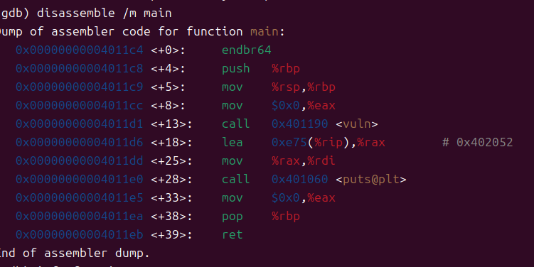 disassemble / m main을 입력하여 바이트 크기가 64라는걸 알수 있었다.