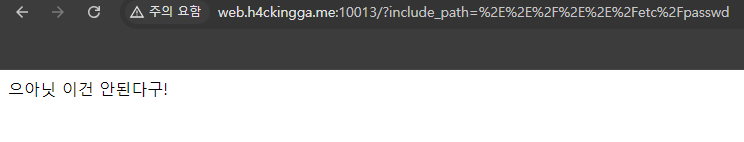그래서 쿼리문자열로 경로조작 공격을 해보았습니다. 하지만 바로 방어를 합니다.