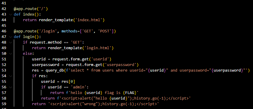 SQL INJECTION 취약점을 통해 플래그를 획득하세요. 플래그는 flag.txt, FLAG 변수에 있습니다.