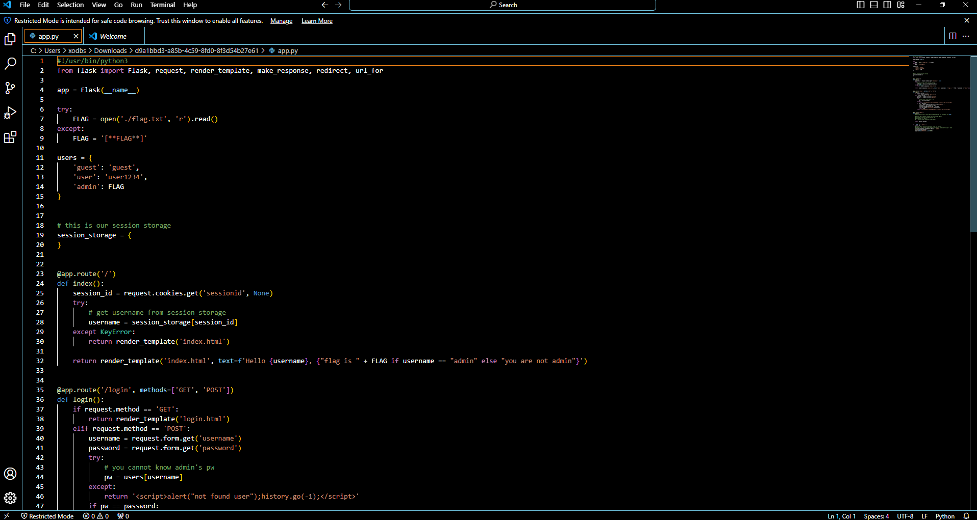 문제 설명여러 기능과 입력받은 URL을 확인하는 봇이 구현된 서비스입니다.XSS 취약점을 이용해 플래그를 획득하세요. 플래그는 flag.txt, FLAG 변수에 있습니다.플래그 형식은 DH{...} 입니다. 문제 웹 입니다.vuln(xss) page에 들어가면 다음과 같이 url 상의 get 파라미터가 반환되어 스크립트가 실행됩니다.script 구문이 실행되어 alert가 되고 있습니다.다음은 memo page입니다.memo는 memo 파라미터에 값을 입력 후 enter 시 메모창에 입력됩니다. 다음은 flag page입니다. 문제에 필요한 flag 값이 check_xss 함수의 인자로 들어가 있습니다. check 함수의 인자에 flag 값이 할당되었으며 반환 값인 read_url은 url을 호출하는..